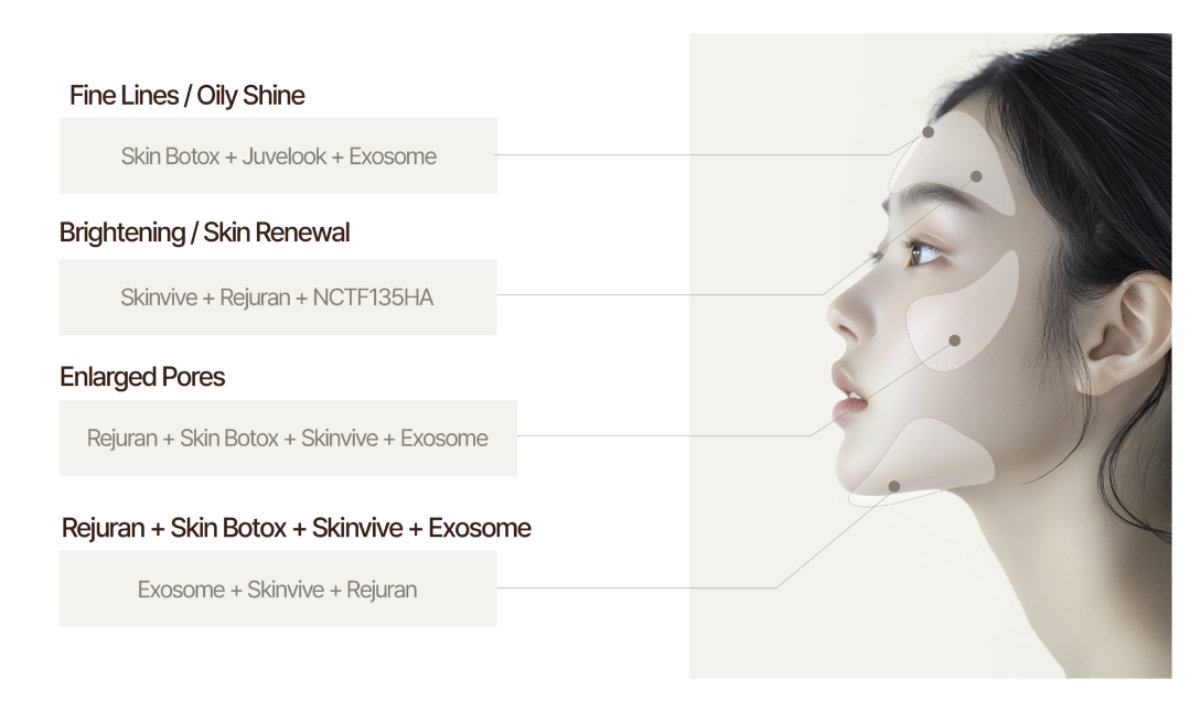 Experience advanced lifting and skin booster treatments at our clinic in Korea, designed to enhance natural radiance and restore youthful contours.